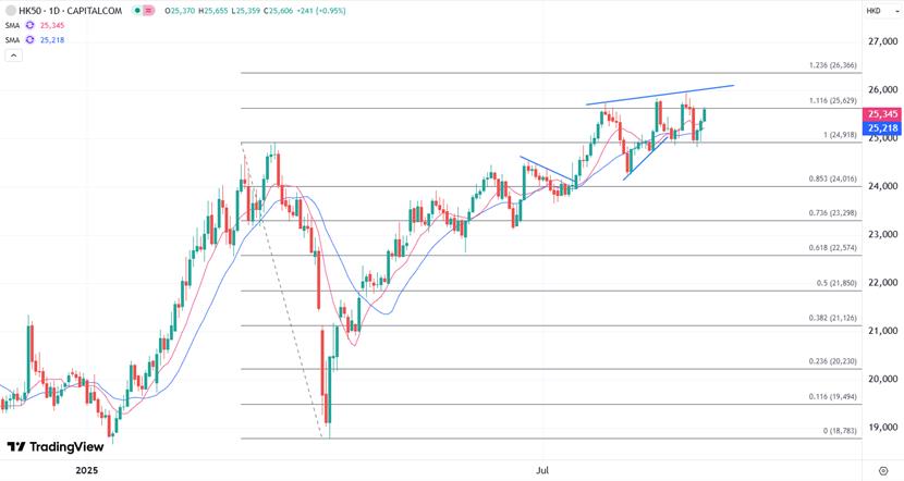 XM Hong Kong Stocks: Hong Kong stocks rose to the 25,000 mark on the last trading day of August, up 1.2% for the whole month. The market continued its upward trend on the first day of September, and the Hang Seng Index opened 430 points higher this morning. The half-day rose 442 points or 1.8% to 25,520 points; the National Index rose 138 points or 1.5% to 9,085 points; the Hang Seng Technology Index rose 100 points or 1.8% to 5,775 points, and the market continued to rise in the afternoon.