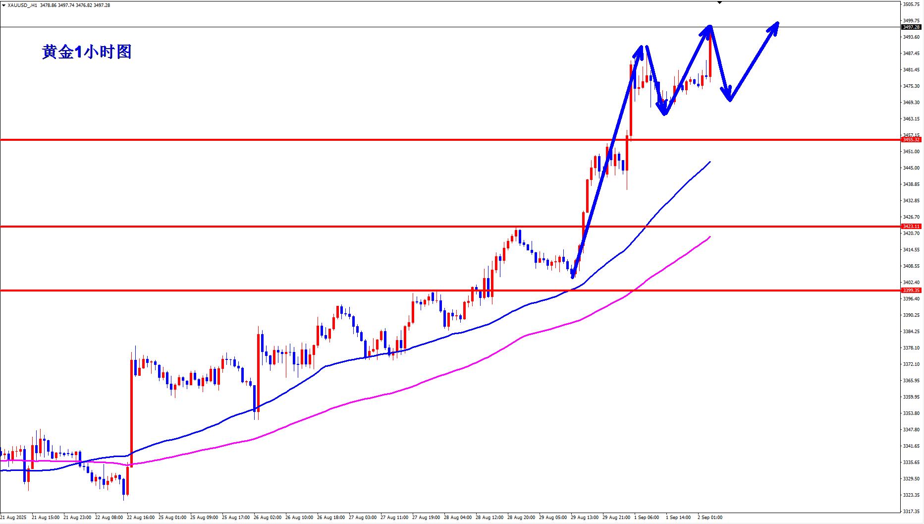 The gold 1-hour moving average continues to move upwards with a golden cross. The bulls in the gold are still as powerful as the rainbow and unstoppable. Gold is about to break through the historical high of 3500. If it continues to break through the historical high, it is expected to accelerate the rise. Gold began to fluctuate after breaking through yesterday. The low point of gold fluctuation of 3466 is still too high. Gold falls back on 3466 in the early trading and continues to be high. If gold directly breaks through the 3500 line, then you have to wait for a slight pullback before continuing to increase.
