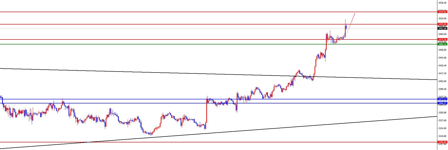 Gold 3366-3374 is a long-shoulder watershed, and the price remains long in this area