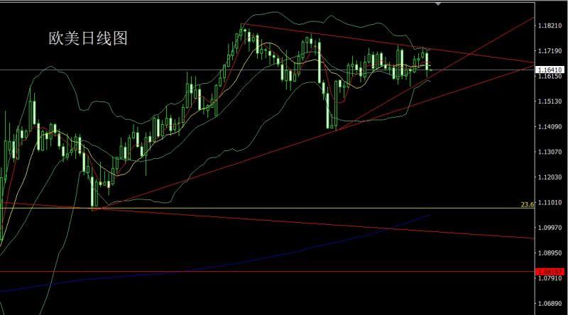 European and American markets opened at 1.17086 yesterday and the market rose slightly, giving a position of 1.17180. The market fell under pressure and fell strongly. The daily line was at the lowest level of 1.16118. The market finally closed at 1.16413. The market closed with a large negative line with a long lower shadow line. After this pattern ended, today's short stop loss of 1.17000. The target below is 1.16400 and 1.16100. If it falls below, it looks at 1.15800 and 1.15600.