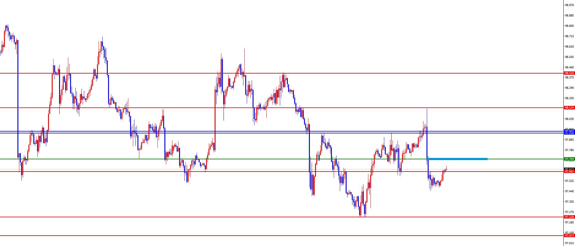 In terms of the performance of the US dollar index, the US dollar index showed a downward trend on Thursday. The price of the US dollar index rose to 98.119 on the day, and fell to 97.446 on the lowest, and finally closed at 97.522. Looking back at the market performance on Thursday, the price maintained a rise in the short term during the early trading session, and then the price tested the daily and weekly resistance areas as scheduled. At the same time, the US market was quickly under pressure with the help of data prices. Finally, the daily line ended with a large negative end, and the subsequent daily and weekly resistance gains and losses are still the key.