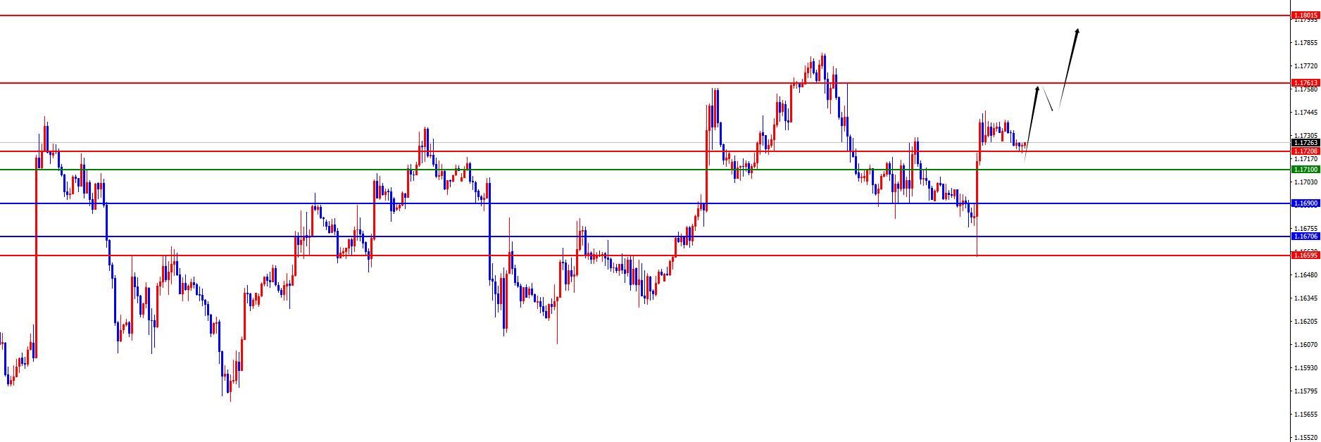 Europe and the United States have a lot of ranges of 1.1710-20, defense is 40 points, and target is 1.1760-1.1800