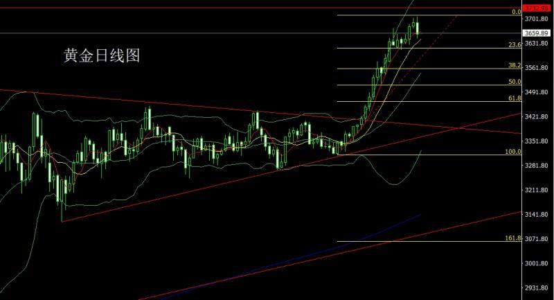 Yesterday, the gold market opened at 3690.1 and then the market rose slightly, and then the market fluctuated and fell. The US market was given a position of 3659.1 at the beginning of the market and then the market rose strongly. The daily line reached a record high of 3707.8 and then the market fell strongly at the end of the trading session. The daily line was at the lowest point of 3645.6 and then the market consolidated. After the daily line finally closed at 3657.1. The daily line was slightly longer than the upper shadow line. The big negative line of the lower shadow line closes, and after such a pattern ends, the daily line has the pressure to take profit-taking. At the point, the long 3325 and 3322 below are long and 3377 and 3385 long and 3563 last week are reduced and the stop loss follows at 3570. The early trading today first pulled up and gave 3678 short 3680 short stop loss 3685, the target is 3653 and 3645, and if it falls below, the support of the range of 3640 and 3641-3638.