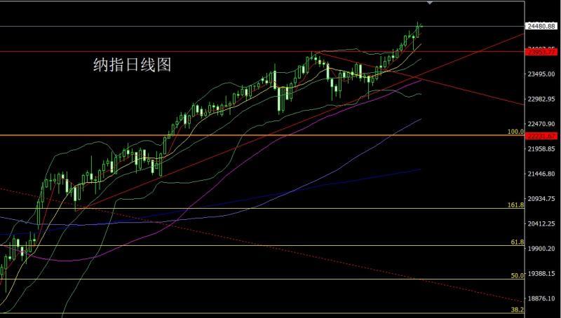 Nasdaq market opened at 24251.58 yesterday and the market fell slightly back to 24244.91. After the market rose strongly, the daily line reached the highest point of 24568.45. After the market consolidated, the daily line finally closed at 24468.39. Then the market closed with a large positive line with a longer upper shadow line. After this pattern ended, 24375 more stop loss 34300 today, and the target was 24450 and 24500 and 24550.