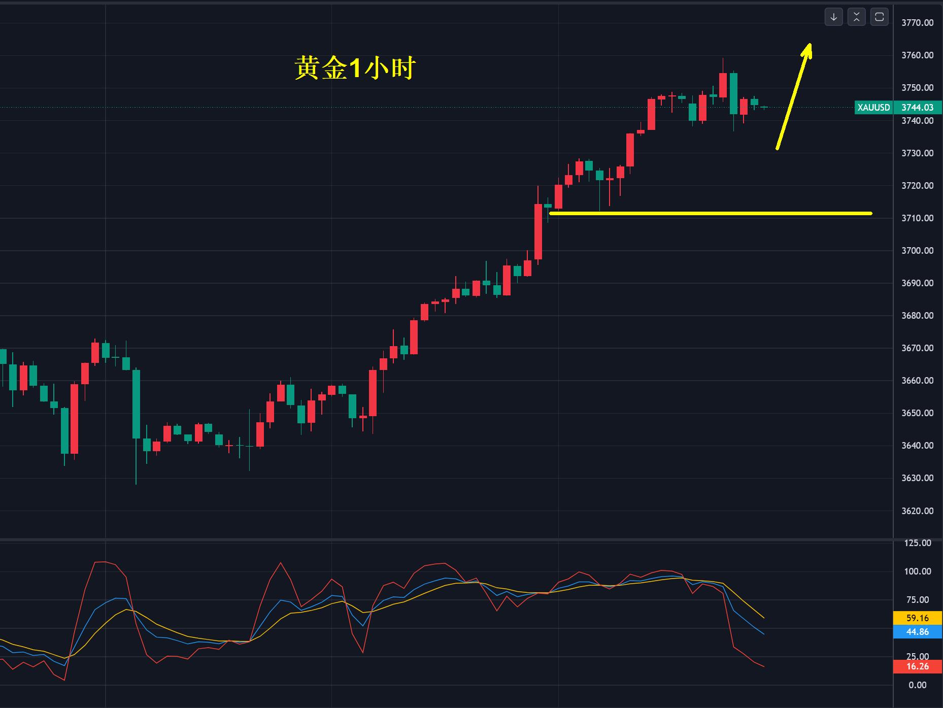 In addition, after this round of rise, the focus is on technically focusing on the starting point. Last night, the support was emphasized at around US$3,710. The Asian session rose and the European session continued, and the US rebounded before the session confirmed. This round of rise must be paid attention to the approaching National Day. During the holidays, the gold market was short-selling and long.