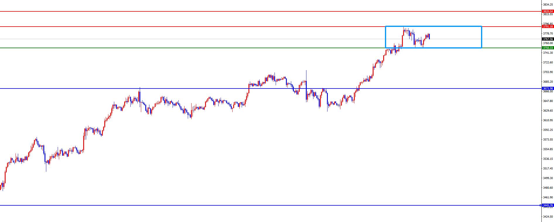 From a multi-cycle analysis, first observe the monthly rhythm. The monthly price ended in August. Overall, the price is still running bullishly. From the long-term perspective, the 3000 position is the watershed of the long-term trend. The price can be treated more on the long-term. From the weekly level, the price has broken through key resistance after recent continuous fluctuations and has continued to hit a new historical high. Currently, the weekly long and short watershed is at 3445. The price is above this position and the medium line is treated more. From the daily level, we need to pay attention to the 3671 regional support for the time being, and the band above this position should be treated more frequently. From a four-hour perspective, the price will continue to rise strongly on the four-hour support in the short term. During the morning session today, the price retracement was tested to the four-hour support position of 3750. The gains and losses of this position determine the key to whether the rise can be continued in the future. The current price is biased towards the 3750-3790 range over the hour, so don’t blindly look at big rises and big falls. There are corrections in the short term, so pay attention to the gains and losses of the early trading lows. Before the break is not, you need to pay attention to the short-term continuation. Once the break is broken, you need to pay attention to the adjustment performance.