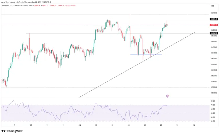 However, gold prices are close to around 3700 at the hourly level, there is a possibility of slowing down or overbought adjustments, butIn a situation where bulls still have xmtraders.complete dominance, the downside space may be very limited. Focus on the potential support near the trend line below 3665/75. If it can break through 3700 strongly, it will open up new upward space. On the contrary, if the surge fails and falls under the key support area of 3628/38, it increases the probability of high-level oscillation.