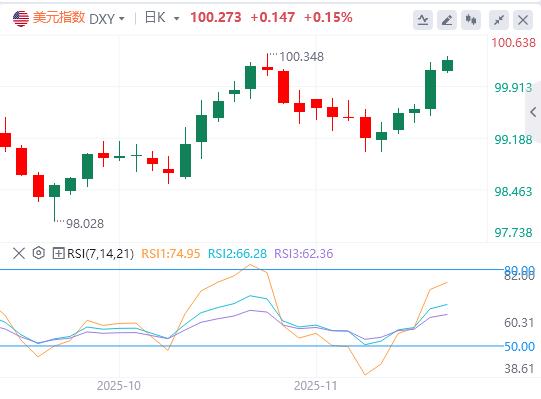 On Wednesday, boosted by risk aversion and expectations that the Federal Reserve may remain on hold in December, the U.S. dollar index strengthened for the fourth consecutive trading day, standing above the 100 mark, a new high in the past two weeks. As of now, the U.S. dollar is quoted at 100.27.