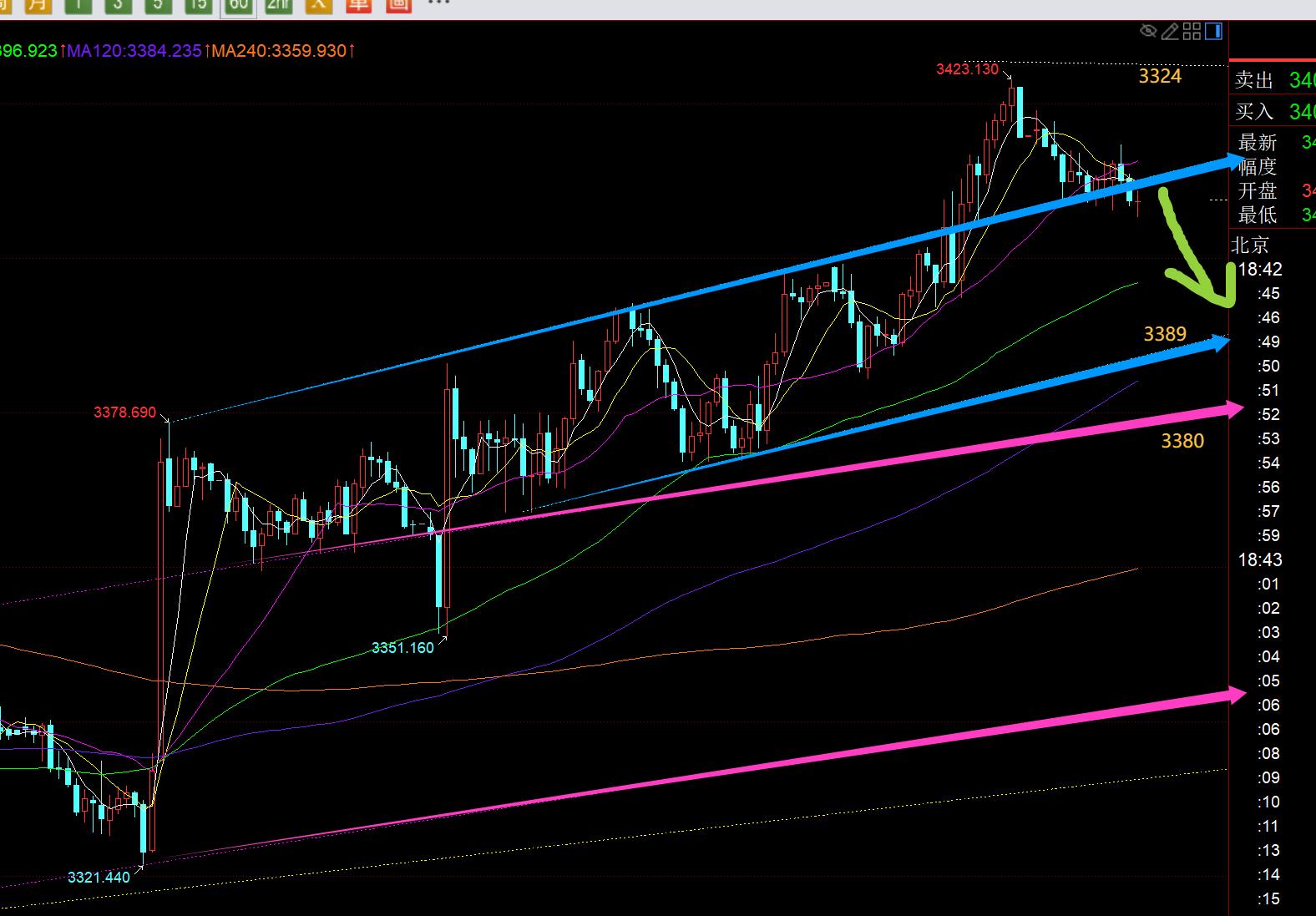Primero, el nivel de línea diaria de oro: ayer, confiando en la promedio de 5 mudanzas de 5 días, se ha vuelto a colocar nuevamente, ha estado unido a un buen retiro de un buen pilotaje en un buen retiro, se ha vuelto a colocar en un buen pequeño. Pero en general, todavía no ha escapado de la consolidación del triángulo de convergencia en los últimos cuatro meses; El máximo nocturno es 3423, perforando ligeramente la vía superior del nuevo triángulo de convergencia de canales, y la línea de cierre al final del mercado aún está en esta línea de canal, por lo que no se puede concluir que el avance es efectivo, y es necesario verificar el patrón de hoy para confirmar; xmtraders.combinado con el video semanal, se detalla el patrón del ciclo de tendencia en los últimos cuatro meses, 3438-3267 pertenece a la tercera ronda de tendencias, se refiere a las dos rondas de 3120 y 3247 en el período anterior, esta vez 3409-3311 es la primera volatilidad y declive. La ola del 3311 estabilizando el ataque ascendente es el primer pull-up. Al menos romperá el punto máximo 3409 anterior, y luego puede lanzar una segunda fluctuación y disminución. Luego se logró anoche, con la pull-up más alta a 3423. Hoy debemos tener cuidado de atacar la presión a corto plazo. Por otro lado, ayer señaló que hoy es el final de la línea mensual, que es fácil de suprimir una ola al final del mes. La línea mensual puede cerrar nuevamente en la línea de sombra superior K, y se estabilizará y se elevará nuevamente a principios del próximo mes. En resumen, debes ser cautelosamente optimista hoy, o no apresurarte a alcanzar la opción y observar la fuerza de la tendencia del día; El soporte de 5 promedio móvil de hoy en día se mueve hacia arriba en 3395-96, solo cuando el cierre cae efectivamente por debajo de él, el mercado puede convertirse en una disminución a corto plazo y retroceder hacia abajo, y luego la segunda oscilación y caída, dependiendo del punto de apoyo derivado de la línea de tendencia 3267-3311, continúe siendo alcista cuando es bajo, y luego la extracción de 3430-3450, o incluso el punto de apoyo de la línea de tendencia; Nivel de 4 horas: 10 promedio móvil sube 3304-05, y el soporte de la pista media aumenta 3392. Estos dos también son los puntos de soporte para el corto plazo de hoy. Only when this cycle effectively breaks and loses them can it turn from a volatile pull up to a volatile decline;