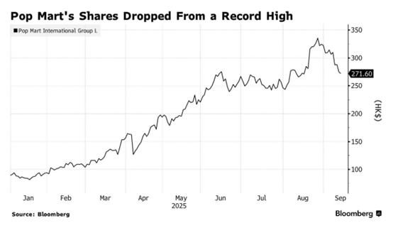 XM Hong Kong Stocks: Pop Mart (09992.hk) El precio de las acciones) ha caído recientemente, con una disminución acumulativa del 24% desde el final de agosto de agosto. Mostró su mayor caída desde abril del lunes, con una fuerte caída de casi el 9% en sesión, la mayor caída en cinco meses. El precio actual de las acciones ha alcanzado el más bajo desde principios de agosto, correspondiente a las expectativas de calificaciones de ingrato de las instituciones de calificaciones, lo que ha intensificado las preocupaciones de las personas sobre la disminución de la popularidad del producto de la xmtraders.compañía.