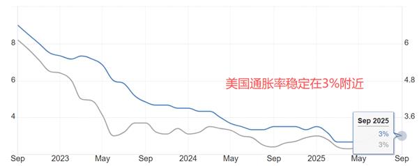 La razón del desacuerdo dentro de la Reserva Federal sobre el recorte de las tasas de interés es que los datos del mercado laboral de Estados Unidos y los datos de inflación son inconsistentes. La teoría económica tradicional sostiene que un mercado laboral débil conducirá a una reducción de la demanda de bienes y la inflación tenderá a caer. A estas alturas, el mercado laboral estadounidense ya está mostrando signos de fatiga: el número de nuevos empleos no agrícolas sigue cayendo por debajo de la marca de 100.000. Sin embargo, la inflación sigue muy por encima del objetivo del 2% de la Reserva Federal. En septiembre, tanto la tasa anual del IPC subyacente xmtraders.como la tasa anual del IPC nominal fueron del 3%, lo cual fue alto.1 punto porcentual por encima del nivel objetivo. Más importante aún, la tasa de inflación en Estados Unidos ha entrado en un período de estabilización, lo que dificulta que siga disminuyendo. Si la Reserva Federal recorta demasiado las tasas de interés, podría provocar que los datos de inflación se recuperen rápidamente.