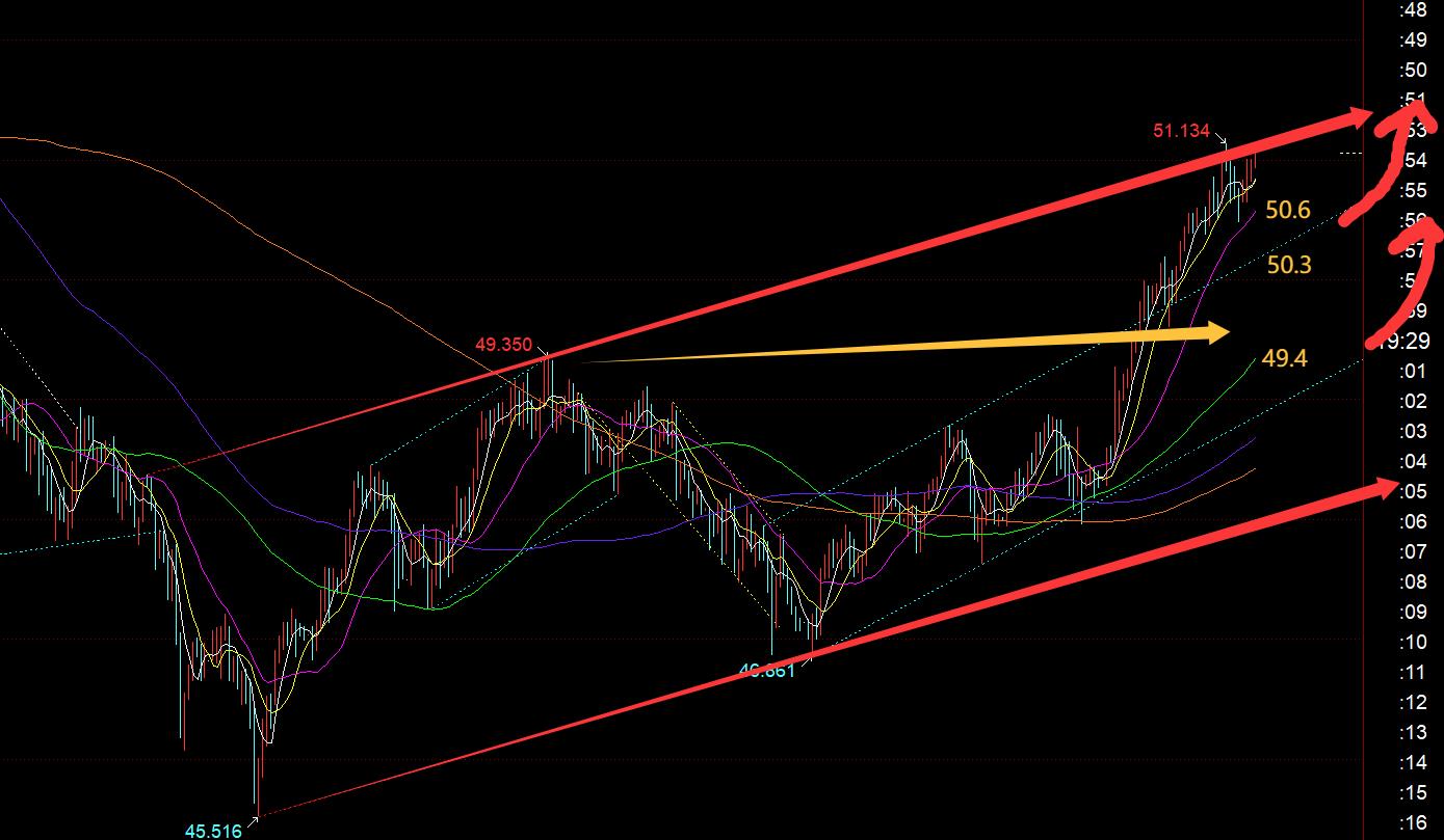 Plata: Ayer también cerró con un fuerte sol, rompiendo efectivamente el nivel de presión lateral de 49,4-49,5 en el triángulo ascendente anterior, luego se convertirá en un efectivo soporte superior e inferior para las perspectivas del mercado, y continuará aumentando; hoy ha subido hasta la línea 51, y ha alcanzado la división 618, el segundo máximo, antes que el oro. Esto implica desde el lado que la plata es más fuerte que el oro, o que todavía hay más margen de mejora, lo que apunta a la próxima división de 52,5. En la imagen de arriba, el mercado asiático también siguió subiendo, subió más y cayó por la tarde, estabilizó la línea horaria y tocó fondo, y está a punto de probar el máximo intradiario. De esta manera, la tendencia del mercado europeo sigue siendo fuerte y habrá una segunda subida esta noche, que obviamente es más alcista que el oro esta noche; después de 50,6-50,8 esta nocheContinúe siendo alcista. Después de superar 51,1, avance gradualmente hacia 52-52,5; es decir, una vez que se abra paso y alcance la pista superior del canal rojo, abrirá aún más el espacio alcista;