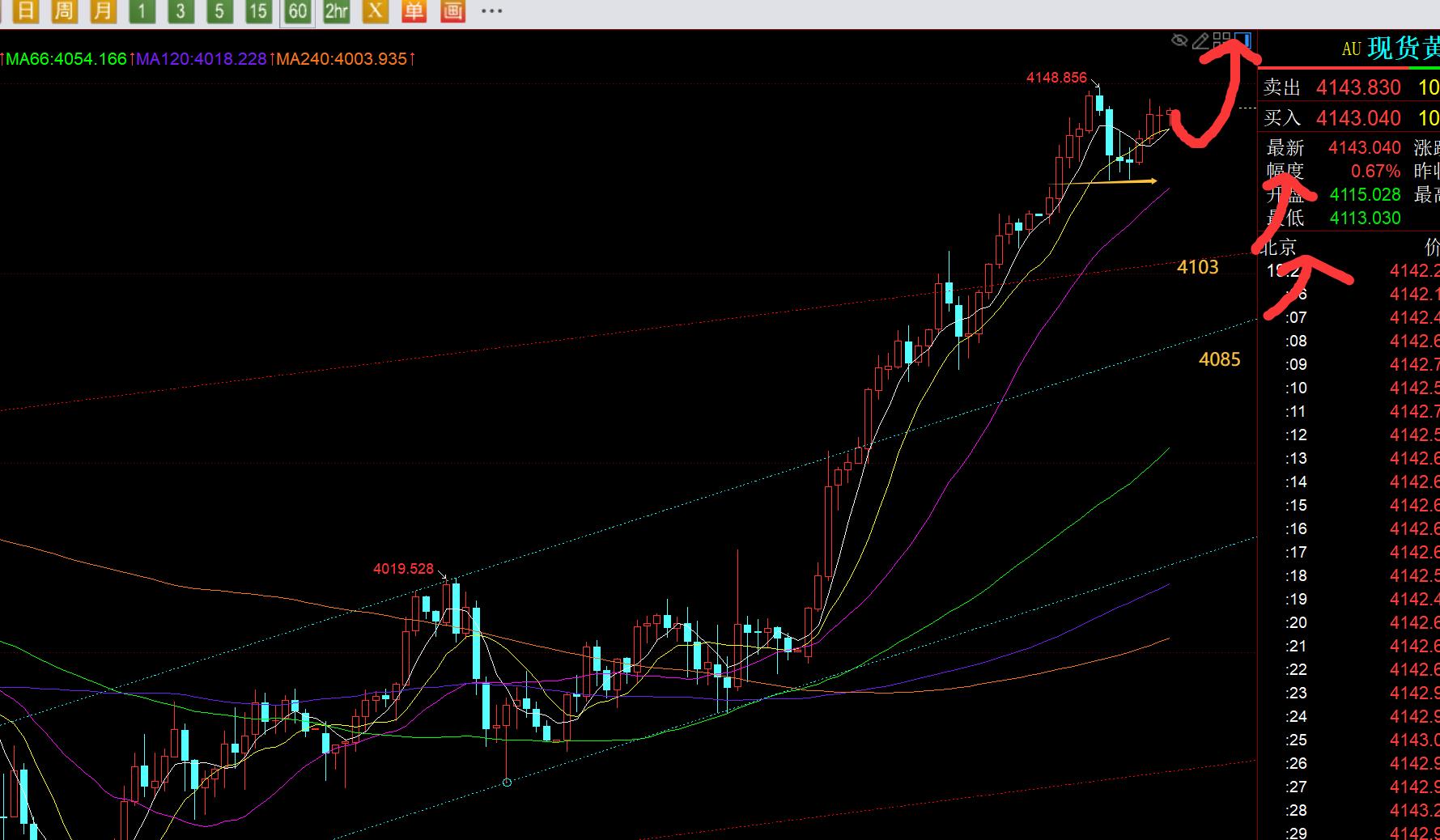 En tercer lugar, el nivel horario dorado: subió con fuerza durante la noche y cerró en un nivel alto. Es probable que este movimiento unilateral provoque una ola de aumento continuo después de la apertura del mercado matutino del segundo día. Los que madrugan y son atrevidos pueden aprovechar la ola primero; el mercado asiático subirá durante una ola de ganancias consecutivas y luego volverá a caer por la tarde. El soporte secundario de 4124 se estabiliza y rompe la resistencia de la pista superior del pequeño triángulo de convergencia del ciclo pequeño, lo que conducirá a una onda ascendente. Desafortunadamente, todavía no ha alcanzado un nuevo máximo. Es difícil juzgar si el mercado estadounidense puede volver a subir y ver si puede superar el máximo antes de las 21 en punto. Dado que el macd de ciclo corto ha divergido seriamente, el máximo. Si la posición es estanflación y no rompe el máximo, no es fácil perseguir el aumento por el momento. Incluso si alcanza un nuevo máximo, es mejor esperar hasta que se estabilice por encima de 4130-4124 antes de considerarlo. El soporte del ferrocarril medio irá subiendo gradualmente hasta el mínimo del mercado europeo de 4124, que se convertirá en el nodo de esta noche. Feng Shui Ridge, si lo estabilizas, continuará manteniéndose. Sigue siendo relativamente fuerte; si cae, sufrirá una breve corrección a la baja. En ese momento, concéntrese en el soporte de 4103-05 y el fuerte soporte de 4085-80, que son puntos de confirmación del soporte superior del canal ascendente anterior. Después de que la corrección sea derribada, debemos atrevernos a ser alcistas;