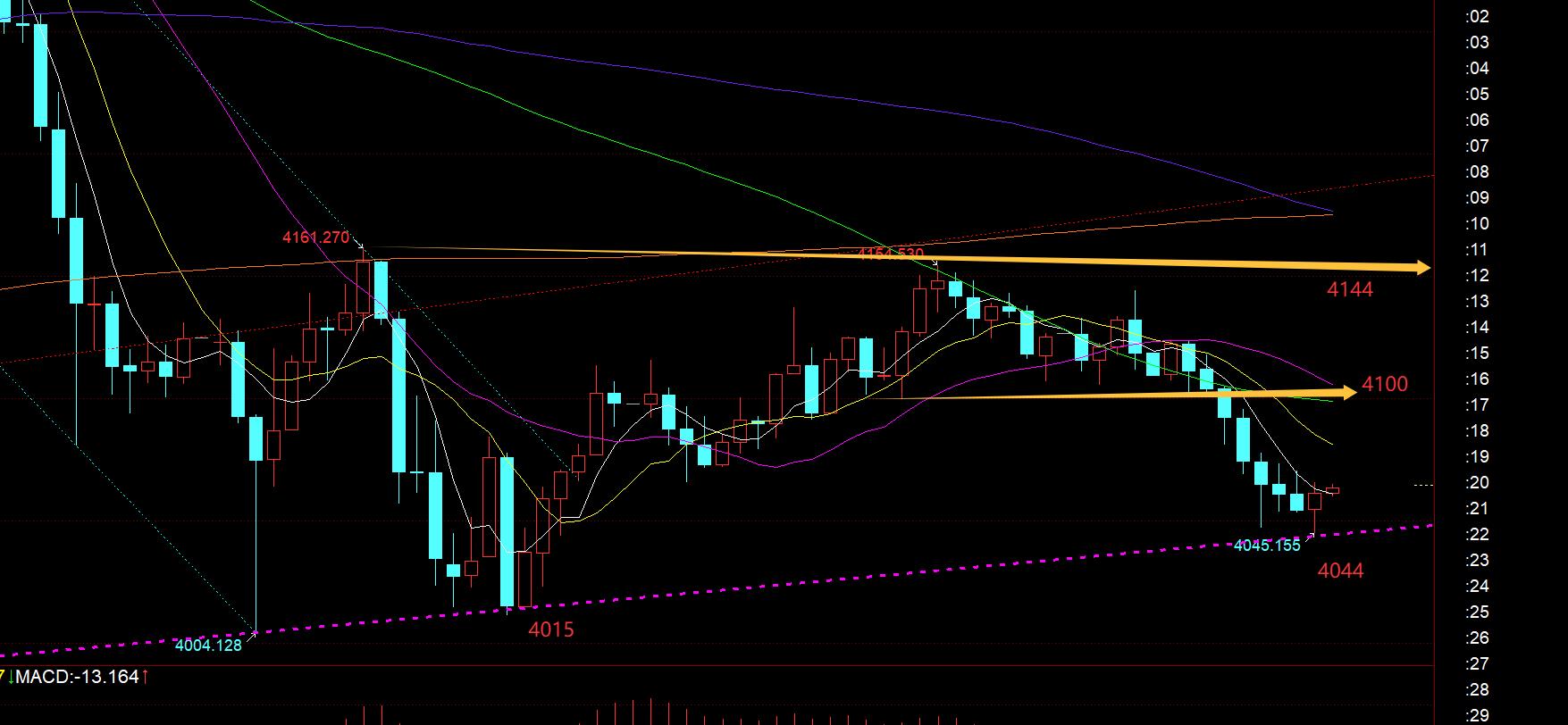 셋째, 황금 시간당 수준: 하룻밤 사이에 안정되었고 4105에서 반등했습니다. 오늘 아침에 다시 하락하여 4105에서 이중 바닥에 도달한 후 4144로 반등했습니다. 가격은 어젯밤 이 이동 평균의 변동과 하락을 억제했기 때문에 66일 주요 이동 평균으로 돌아왔습니다. 그런 다음 양 라인이 그 위에서 마감하고 그 위에 선 후에는 4105를 유지하는 것으로 간주되어 상승 추세를 이어갈 수 있었지만 결국 몇 시간 동안 횡보 거래를 했습니다. 오후에 4100을 돌파하여 하락세를 촉발하여 보라색 추세선 4044에 최저 수준으로 도달하고 특정 반동 효과를 달성하여 이 3311 지지선이 여전히 유효함을 나타냅니다. 그러나 오늘 유럽시장의 약세로 인해 미국시장 전후의 반등이 강세를 유발할 수 있고 2차 억제가 있을 수 있으므로 오늘 밤 그 활력을 다시 시험해 볼 필요가 있습니다. 두 번째 하락폭이 여전히 4044 부근에서 안정된다면 계속해서 바닥권, 4100 상단, 심지어 4150~4160 상단까지 하락할 것입니다. 반대로, 강한 하락세 또는 지속적인 하락 추세로 마감되어 4044 아래로 마감된다면 더욱 주의를 기울여 지속적인 하락 강도를 관찰할 필요가 있습니다. 아래에는 여전히 403이 있습니다. 3. 4025, 4015, 4004와 같은 여러 지원; 또한 미국 시장의 첫 번째 반등 저항은 4080과 4100이 될 것입니다. 압력이 지속되면 두 번째 억제는 하향될 것입니다. 다시 4100에 도달하면 숏 포지션에 주의하고 4144와 4160-4180이 상단에 있는 등 지속적인 풀업이 얼마나 강한지 관찰하세요.