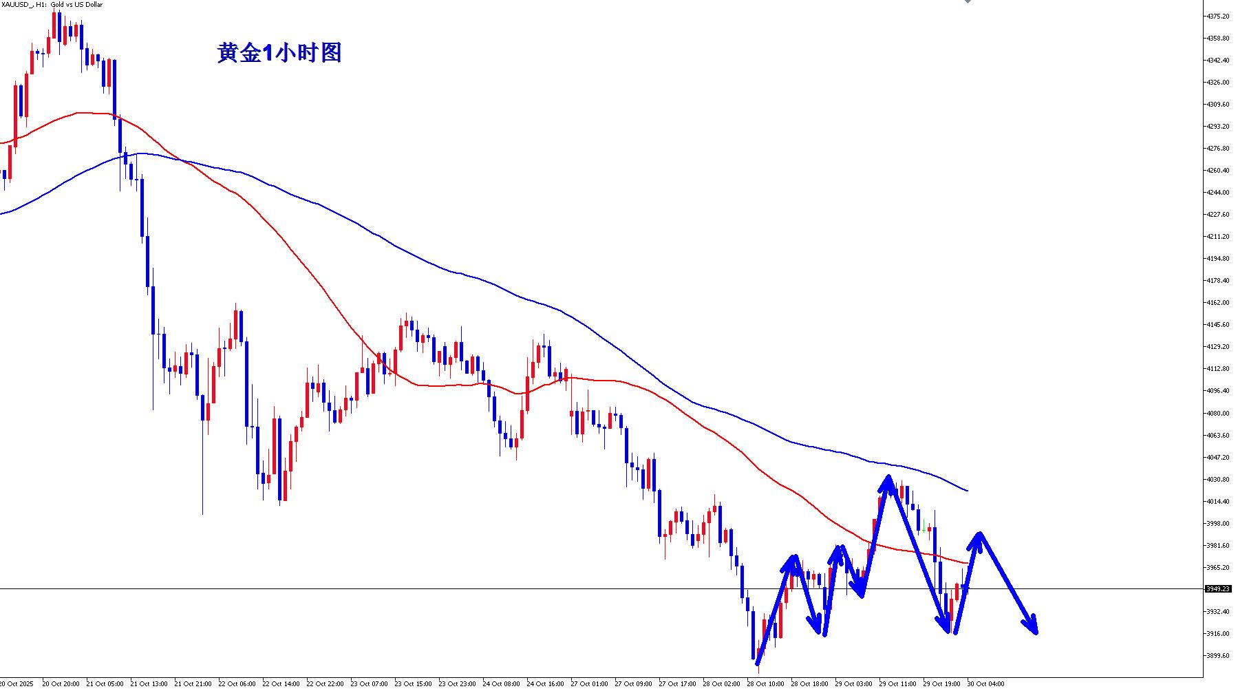 금의 1시간 이동평균은 여전히 하향 교차하고 있으며, 현재 금은 이동평균 아래로 떨어졌습니다. 금은 단기 측면에서 여전히 더 낙관적입니다. 금은 어젯밤 데이터 이후 4007까지 치솟았다가 빠르게 하락했습니다. 금은 거래 초반 4000선에서 압박을 받았으며 계속해서 고점과 저점을 지배했습니다. 금 강세장은 4000선에서 굳건히 서지 않았고, 금 공매도가 더 나았습니다.