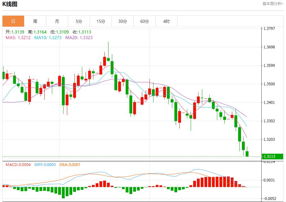 GBP/USD: 베이징 시간 20시 23분 현재 GBP/USD는 하락하여 현재 0.27% 감소한 1.3114입니다. 뉴욕시장 개장 전 전일 장중 거래에서 (GBPUSD) 가격이 하락해 단기적으로 주요 약세장 추세가 지배적이었습니다. 가격은 추세선을 따라 거래되어 이러한 하락 추세가 지속되고 있음을 확인시켜 줍니다. 동시에 가격이 EMA50 이하로 거래되면서 기술적인 압박이 계속돼 지속 가능한 회복 가능성도 낮아졌다.