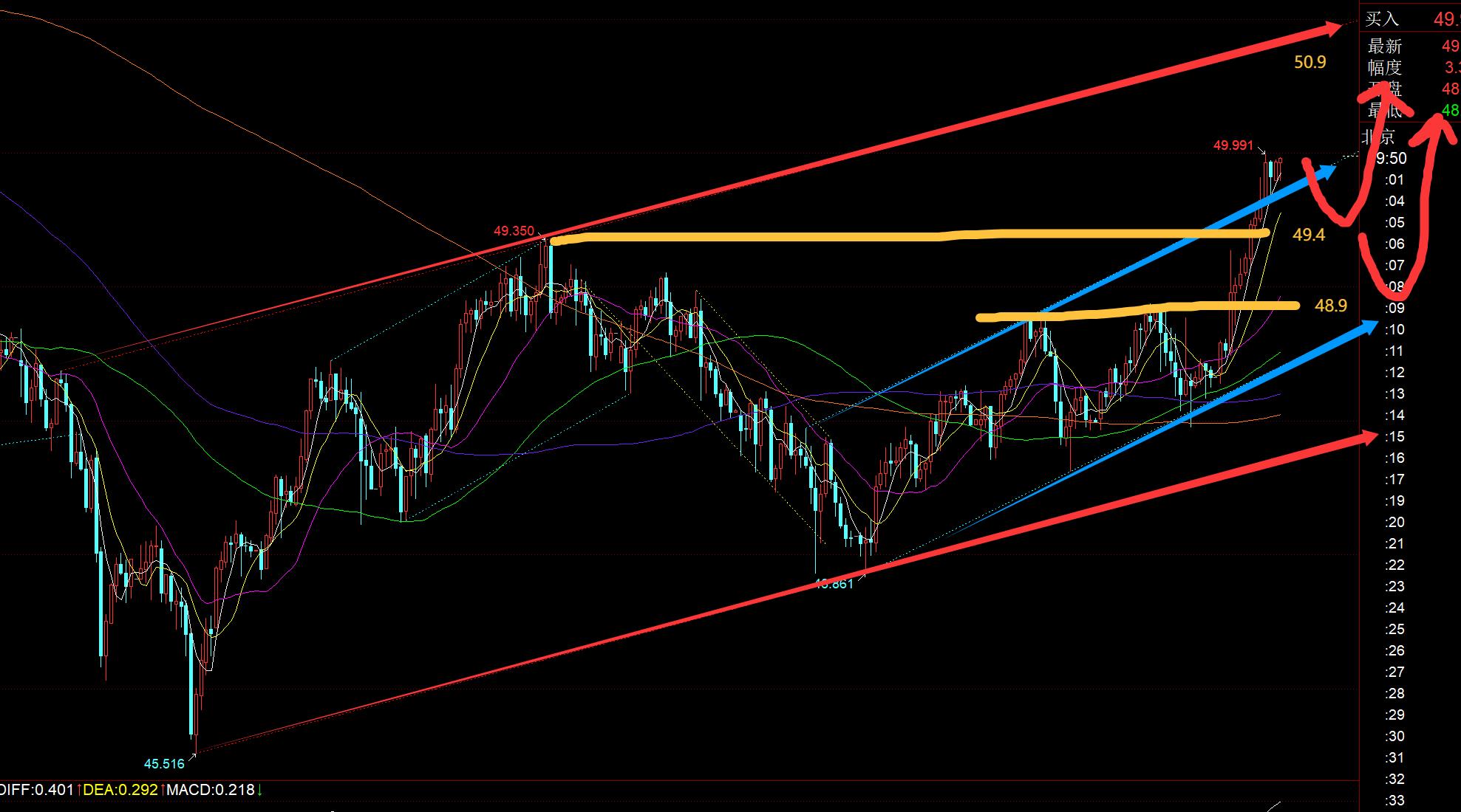 실버: 현재도 주요 저항 수준을 돌파하고 있습니다. 49.4. 오늘의 마감선을 확인해야 합니다. 일일 K가 위에서 마감되는 한 최소한 두 번째 고점은 51선에 도달할 것이며, 현재 위 채널의 상단 지지선은 9.65입니다. 여기서 패배하면 낮 동안 618에 가까운 48.8-48.9에 집중하세요. 지난 이틀 동안의 저점은 안정되고 계속 강세를 보이고 있으며 추가 상승 충격에 대한 목표 저항은 50.9-51입니다.