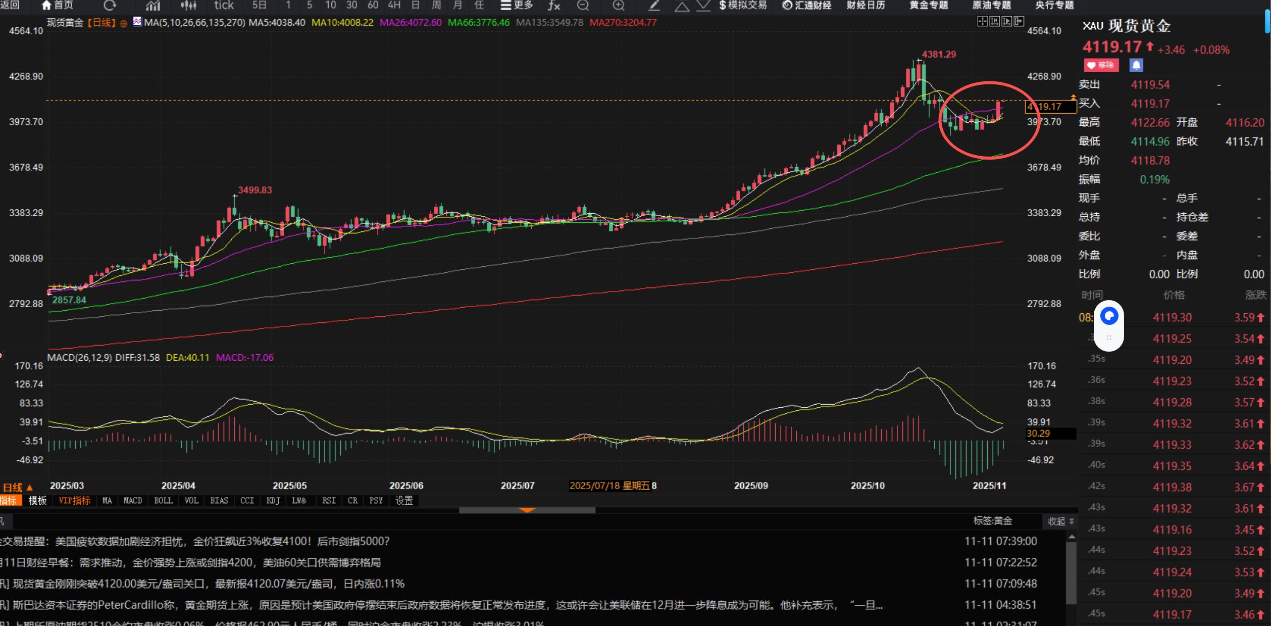 어제 양이 돌파한 뒤 금값이 일방적으로 올랐습니다. 장 중에는 4105 부근에서 하락세를 억제한 후 4076에서 이중 바닥을 형성한 후 상승하여 신고점을 경신했습니다. 일일 차트에서는 대머리 양선을 마감했습니다. 추세적으로 보면 3930 부근까지 마지막으로 하락했다. 반등하며 상승세를 보였다. 어제 공식적으로 중간선을 돌파했고 현재는 4135에서 0.5 레벨을 향해 달리고 있습니다. 이것이 오늘의 핵심 포지션이기도 합니다. 일단 돌파되면 시장 전망은 약 4150-92-4218까지 상승할 것입니다. 그러므로 fallback이 얼마나 되는지 분석할 필요가 없다. 이제 초점은 후퇴할지, 어디로 후퇴할지 여부입니다. 지금 일봉 차트를 보면 그 격차는 4076으로 장단점이기도 하다. 단기 지원은 여기 4100-4082이므로 76-82가 첫 번째 수준으로 사용되고 4100이 첫 번째 수준으로 사용됩니다. 따라서 종합적인 결론은 다음과 같다.
