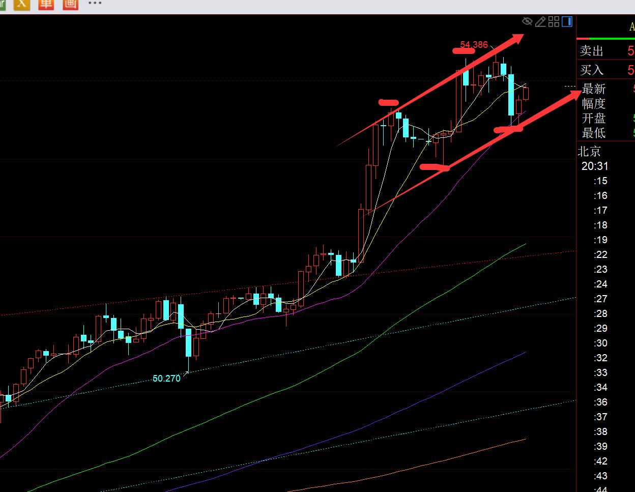 둘째, 은의 경우: 유럽 증시 전후로 돌파구가 지적됐다. 레드 채널을 돌파하고 레일에 부딪힌 뒤, 한 발 물러서 확정된 위치는 51.45선이다. 아래로 떨어져서 채널로 돌아오면 수정을 억제할 수 있습니다. 하지만 어제 51.45에 막 닿았다가 안정되고 계속 급등세를 보이면서 금은 쭉 상승세를 이어갔습니다;