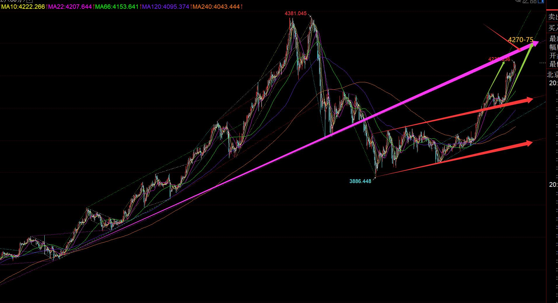 금은 4192를 직접 교차했고 두 번째 고점은 다음 4275까지 이어졌습니다.