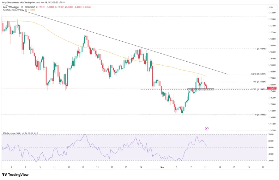 Walaupun akhir penutupan tidak bermakna data ekonomi baru-baru ini akan dikeluarkan tepat pada masanya, Fed dijangka mempunyai tiga laporan bukan pertanian (September, Oktober, dan November) sebagai rujukan sebelum mesyuarat 10 Disember. Ini sangat mengurangkan risiko kesilapan membuat keputusan dan juga akan mengurangkan perbezaan serius dalam Fed. Kebarangkalian pemotongan kadar pada bulan Disember yang tersirat oleh pasaran kadar faedah semasa telah menurun kepada sekitar 60%, yang telah membantu indeks dolar AS menstabilkan sekitar 99.60.