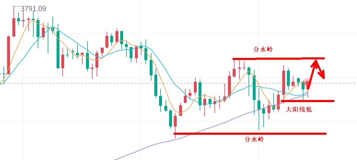 3,欧盘破日内高点,美盘前继续测试了3740,也是日内涨幅回撤618位置,走了二次上升。