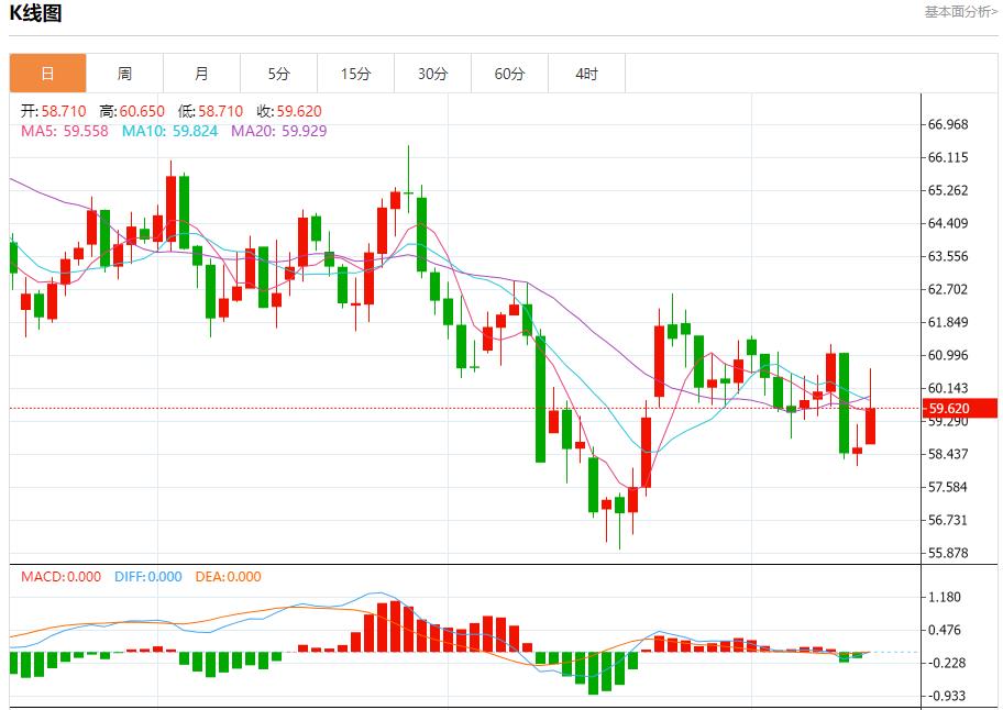 原油市场:截止北京时间21:20,美油上涨,现报59.610,涨幅1.58%。纽市盘前,(原油)价格在最后一个交易日强劲上涨,受到相对强势指标积极信号的支撑,超过了EMA50的阻力,摆脱了负面压力,为近期实现更多收益开辟了道路。