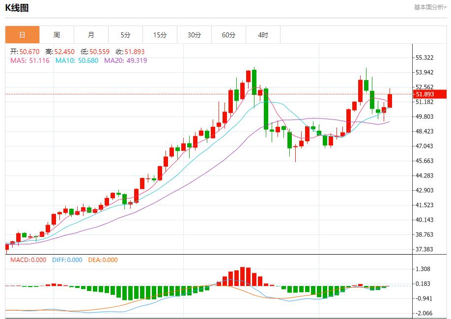 现货白银:截止北京时间21:20,现货白银上涨,现报51.907,涨幅2.43%。纽市盘前,(白银)价格在最后一个盘中交易中强劲上涨,利用了其在EMA50上方交易所代表的动态支撑,超过了52.00美元的阻力,这代表了我们在之前的分析中的预期目标,主要看涨趋势占主导地位,其交易伴随着该趋势短期基础上支持的次要趋势线。
