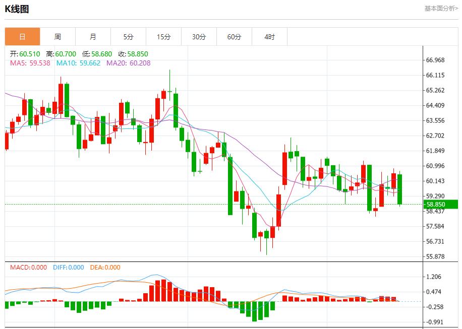 原油市场:截止北京时间21:20,美油下跌,现报58.830,跌幅3.00%。纽市盘前,(原油)价格在最后一个交易日下跌,试图获得可能有助于其上涨的看涨动力,并试图在相对强度指标上卸载一些明显的超买条件,从那里出现了负面信号,来自EMA50上方交易的正面压力持续存在,并在短期基础上的次要看涨通道及其沿趋势线交易的主导下。