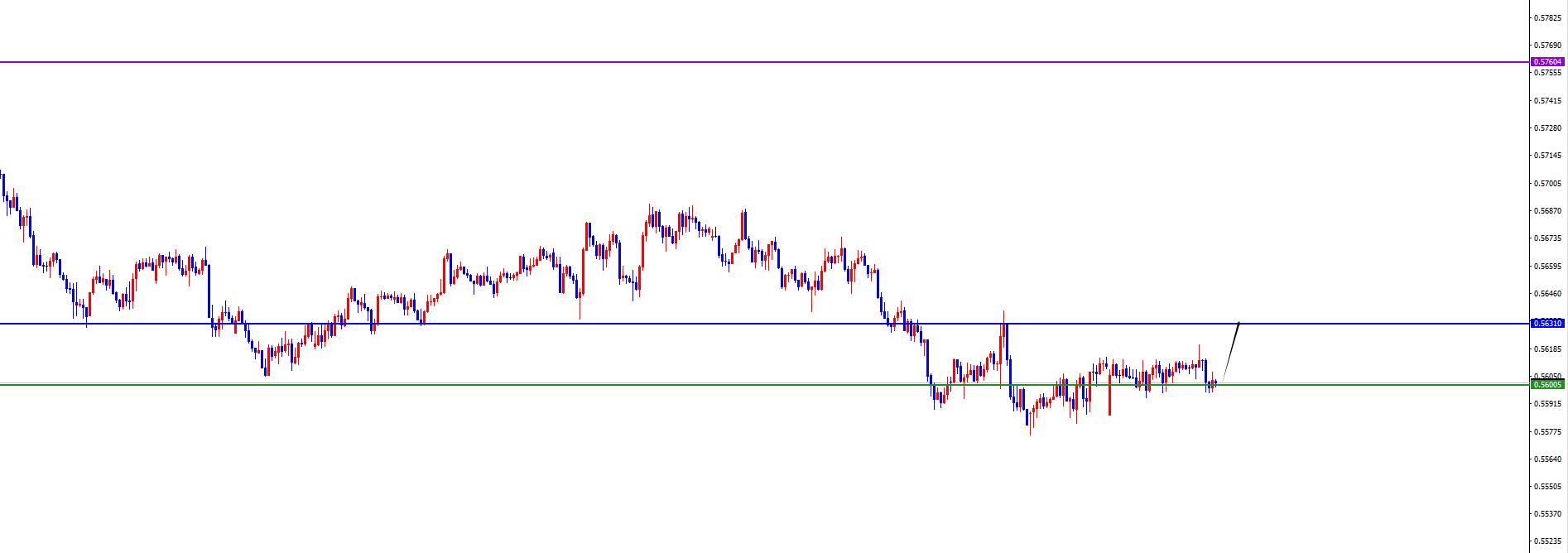 关键分水岭0.5600区域,价格出现反转,短线关注上行