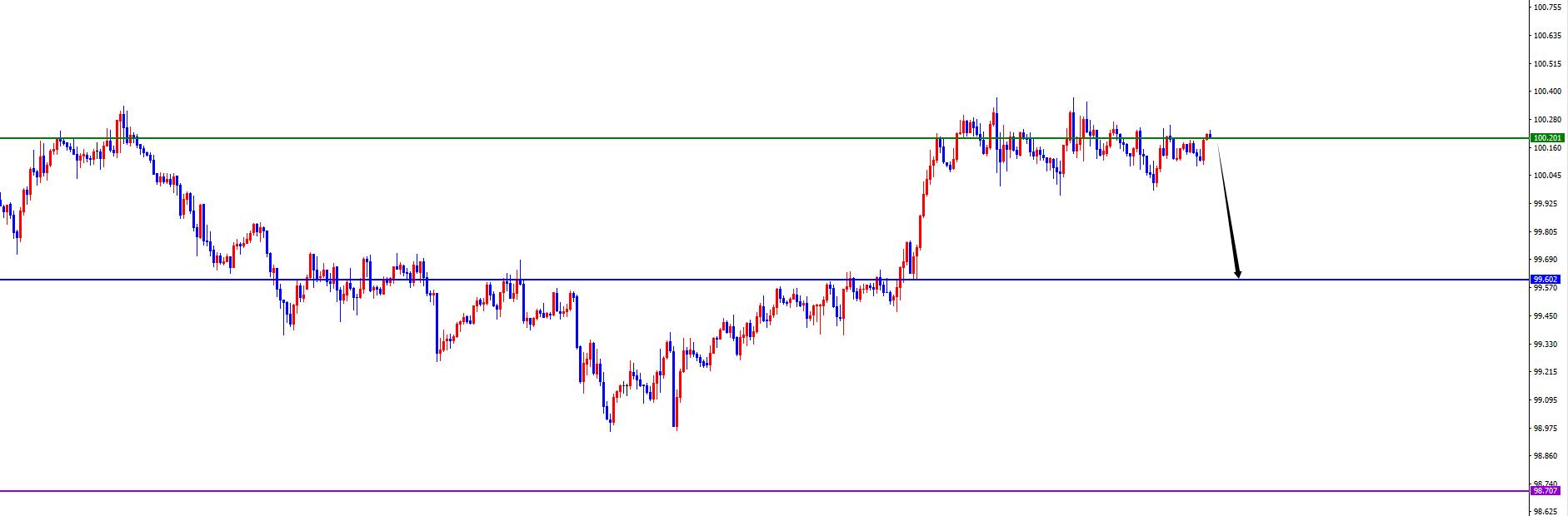 关键分水岭100.20区域,价格没有出现反转信号之前维持空(副趋势)