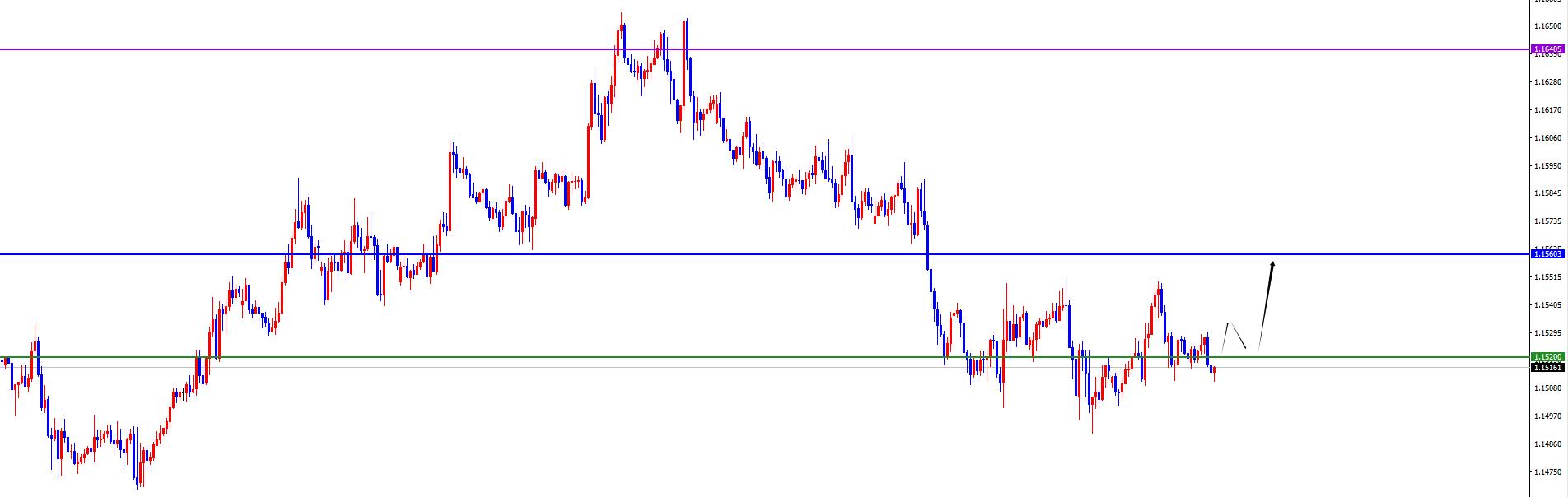 关键分水岭1.1520,价格没有出现反转之前先维持空(上破后回踩多)