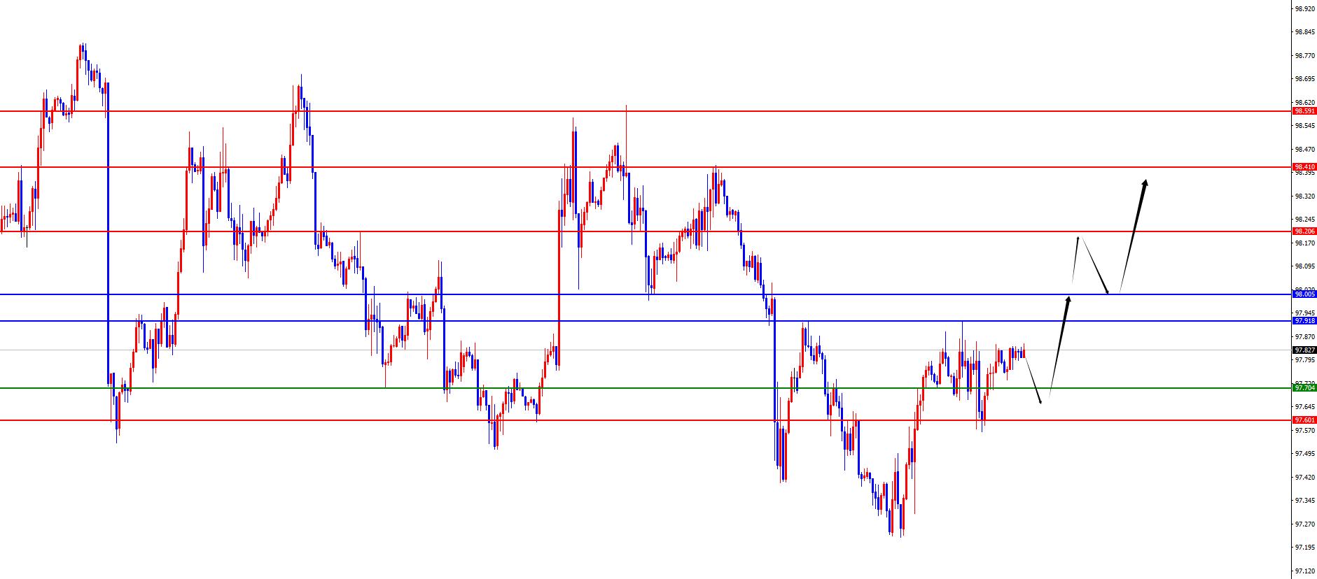 De uma análise de vários ciclos, o preço tem consolidado recentemente o nível semanal. Atualmente, a resistência semanal está na área de 97,90 e o preço é de ombro curto abaixo dessa posição. O preço só ficará muito tempo após o fechamento semanal subsequente acima desta posição. A partir do nível diário, xmtraders.com o passar do tempo, a atual resistência diária está na área 98. Atualmente, é necessário prestar atenção se o preço pode estabilizar a resistência à ressonância diária e semanal. Do ponto de vista de quatro horas, ontem, ele aumentou ainda mais depois de recuar para o apoio de quatro horas, conforme programado. Atualmente, o preço ainda está acima do suporte de quatro horas. Hoje, ele se concentra no suporte na faixa de 97,60-70 e, acima, a faixa de 97,90-98 se estabilizou. Na primeira hora, a flutuação de curto prazo está atualmente mostrando um aumento volátil; portanto, continue aguardando o aumento do apoio antes que o preço continue a subir depois de se estabilizar no futuro.
