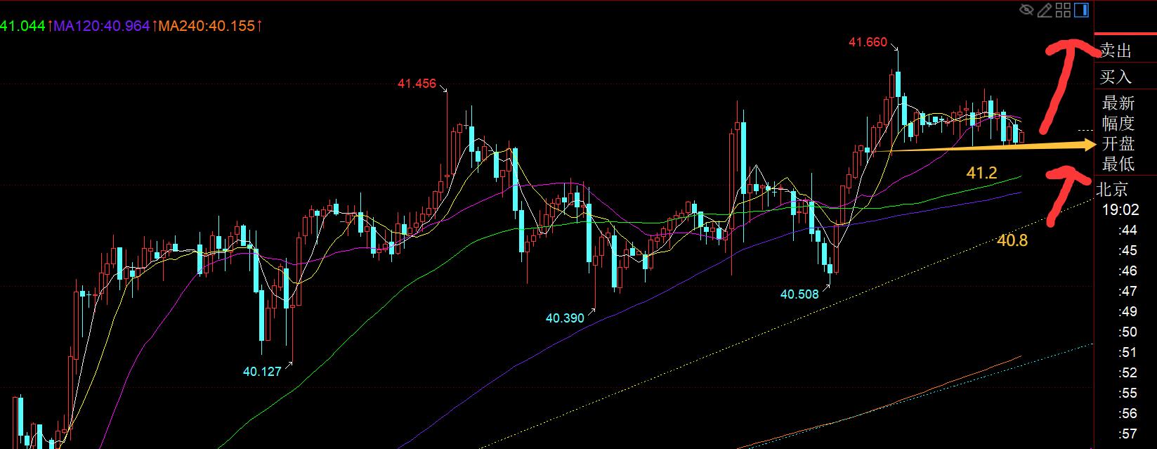 第二,白銀方面:昨日測試40.6-40.4震盪下軌支撐後,也是如期拉升,再次抵達41.4目標;