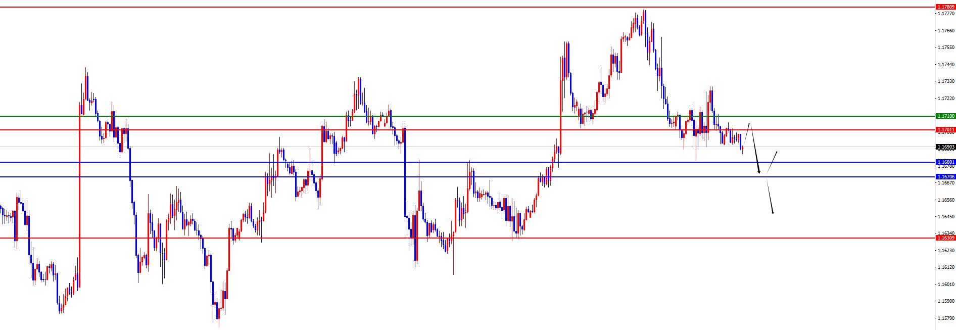 歐美1.1700-10區間空,防守40點,目標1.1680(破位後看1.1630)