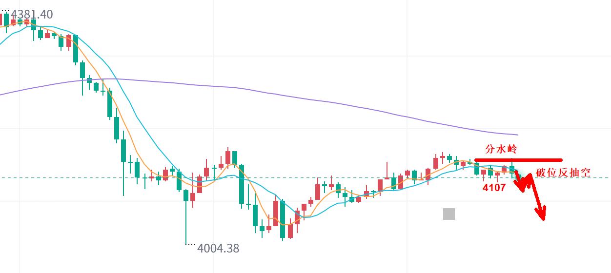(2),下方分水嶺4106,早間低點。日內破位反抽也是空。